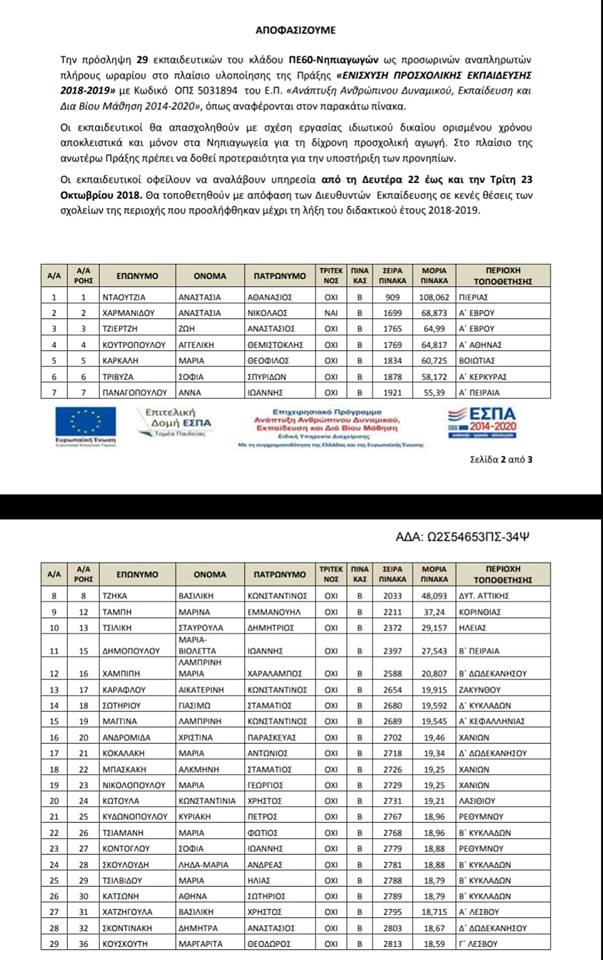 Αναρτήθηκαν στο "διαύγεια"