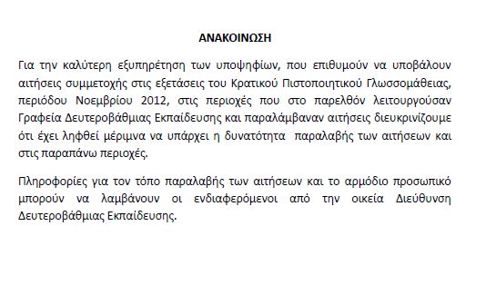 12.09.2012 - 14:44 Ολα για τις εξετάσεις ΚΠγ Νοεμβρίου 2012 ΔΕΙΤΕ ΕΔΩ ΑΝΑΛΥΤΙΚΑ ΕΚΠΑΙΔΕΥΣΗ Ολα για τις εξετάσεις ΚΠγ Νοεμβρίου 2012