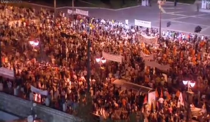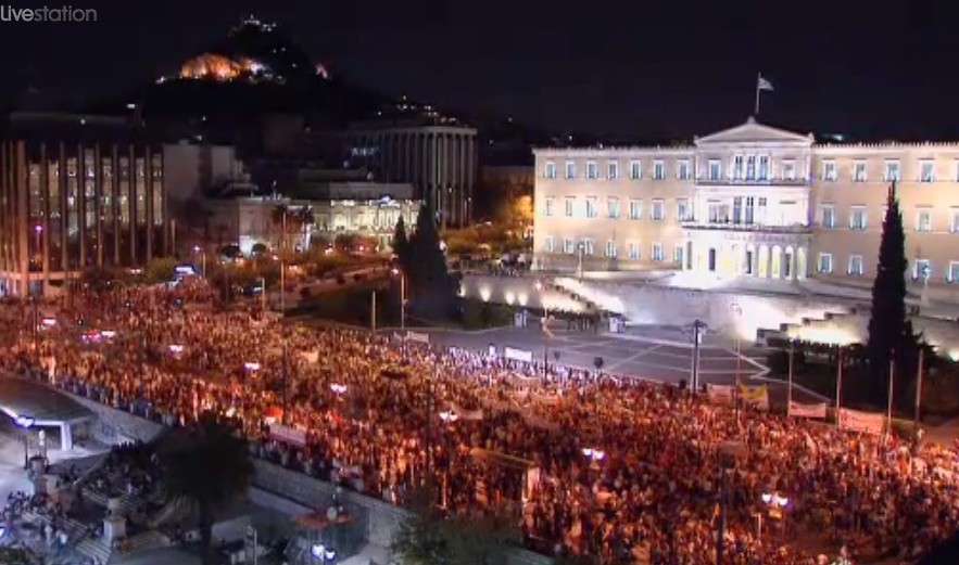 10:30 Από τα μεγάφωνα ανακοινώθηκε κάλεσμα για αύριο στις 6.30 το απόγευμα στην Κλαυθμώνος παρά την απαγόρευση των συγκεντρώσεων λόγω έλευσης Σόιμπλε.