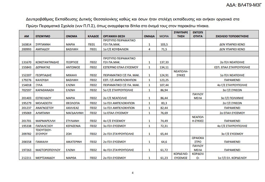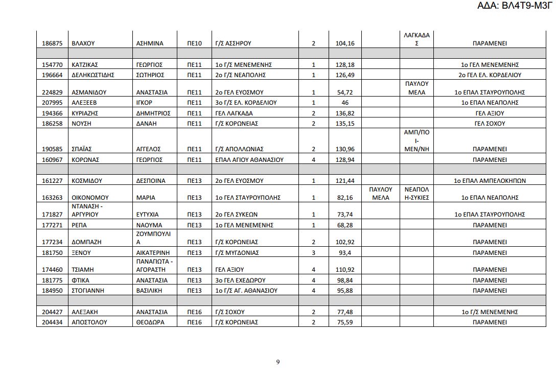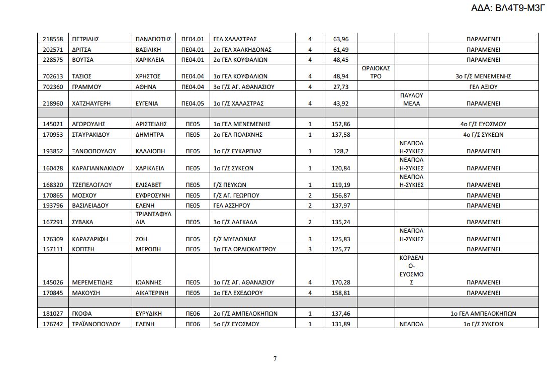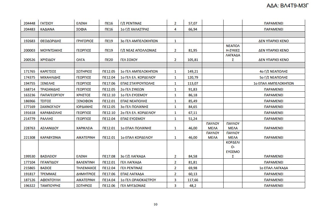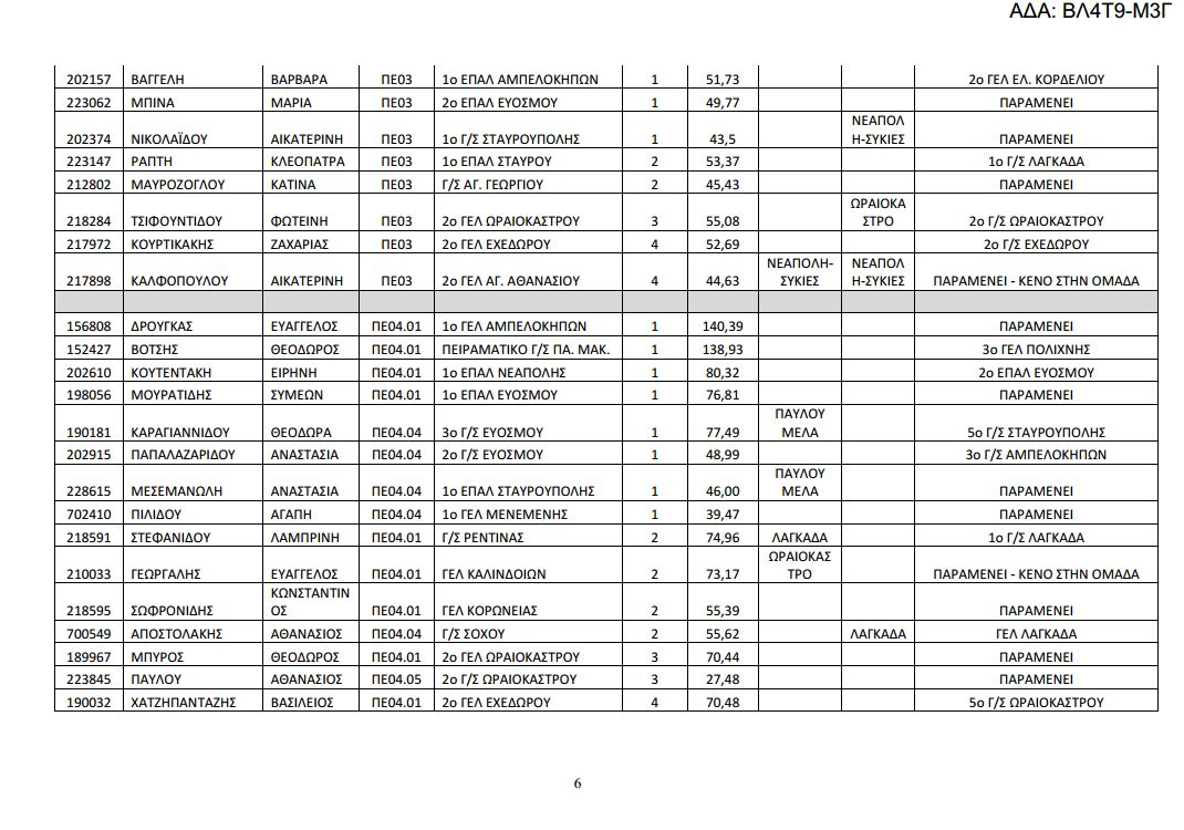 Δείτε αναλυτικά στους παρακάτω πίνακες τις μεταθέσεις και τις τοποθετήσεις των υπεράριθμων εκπαιδευτικών της Δ/σης Δευτεροβάθμιας Εκπαίδευσης Δυτικής Θεσσαλονίκης. Κατεβάστε εδώ το επισυναπτόμενο αρχείο.