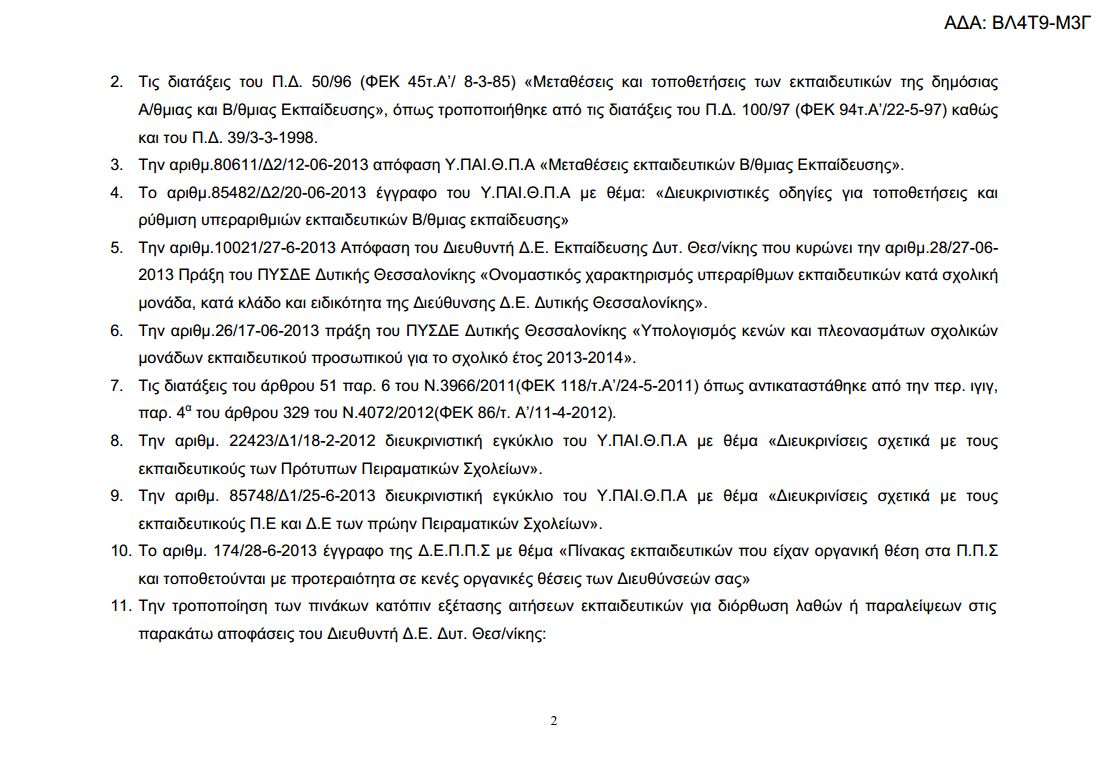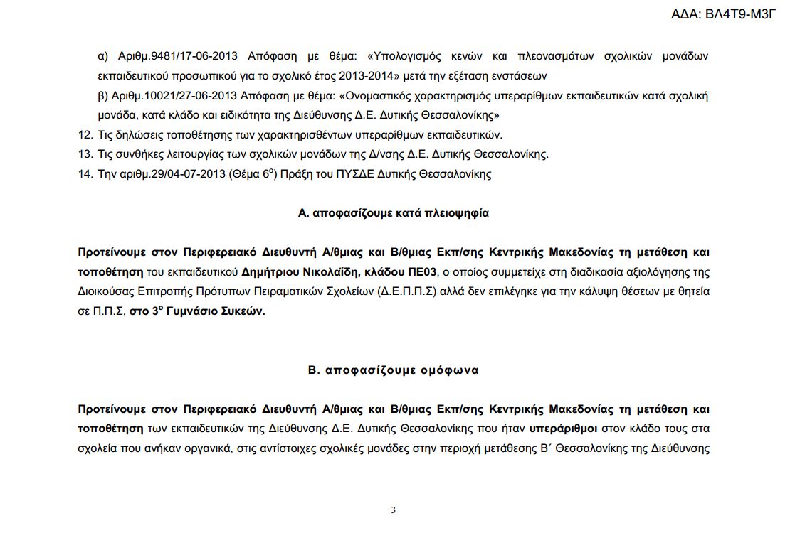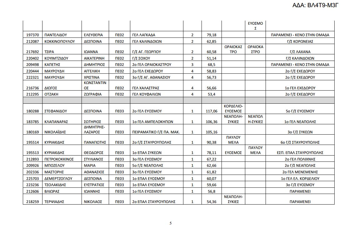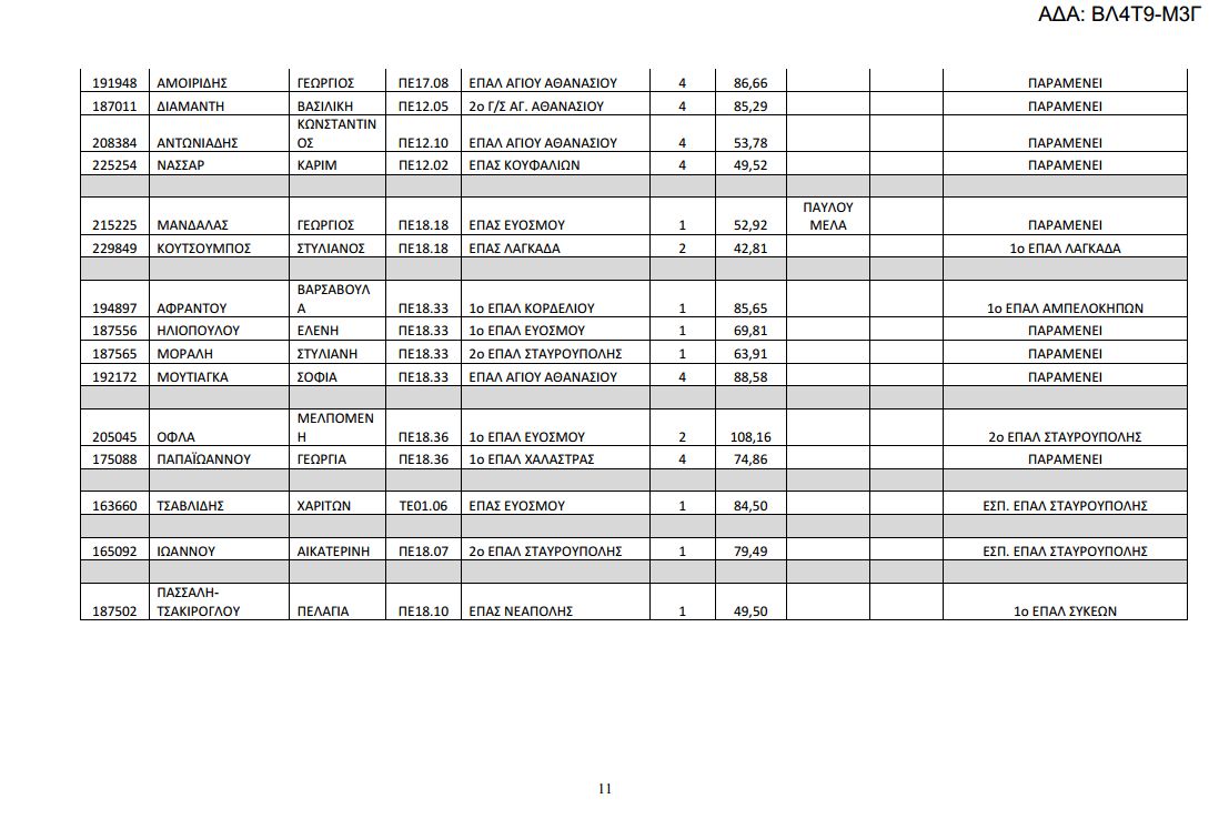 Δείτε αναλυτικά στους παρακάτω πίνακες τις μεταθέσεις και τις τοποθετήσεις των υπεράριθμων εκπαιδευτικών της Δ/σης Δευτεροβάθμιας Εκπαίδευσης Δυτικής Θεσσαλονίκης. Κατεβάστε εδώ το επισυναπτόμενο αρχείο.