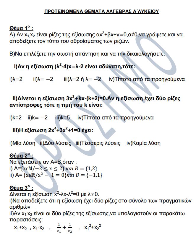 Δείτε εδώ:Προτεινόμενες απαντήσεις για το μάθημα της Αλγεβρας στην Α Λυκείου