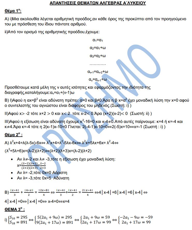 Δείτε εδώ και τα Προτεινόμενα θέματα για το μάθημα της Αλγεβρας στην Α λύκείου