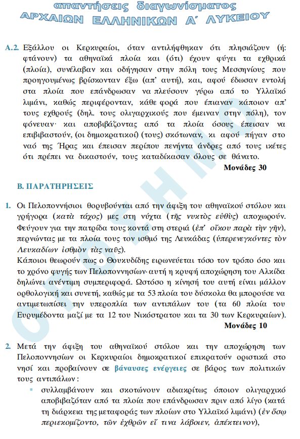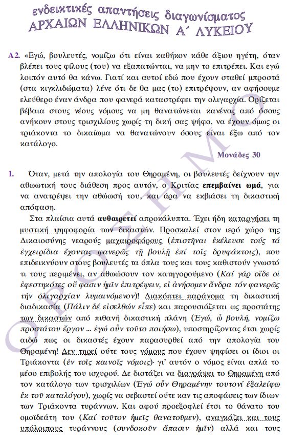 Προτεινόμενα θέματα, λύσεις και εκτιμήσεις για το μάθημα των Αρχαίων Α΄Λυκείου
