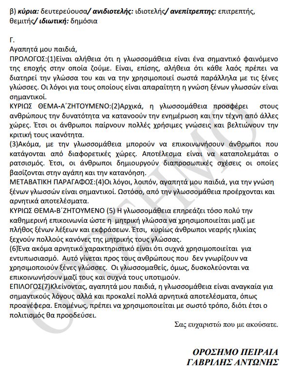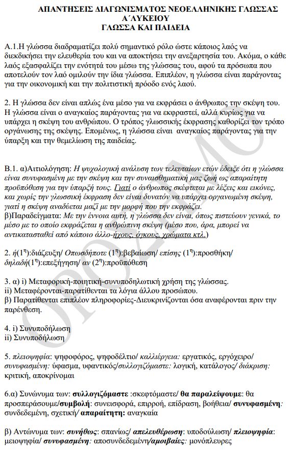 Προτεινόμενα θέματα για το μάθημα της Νεοελληνικής Γλώσσας στην Α λύκείου