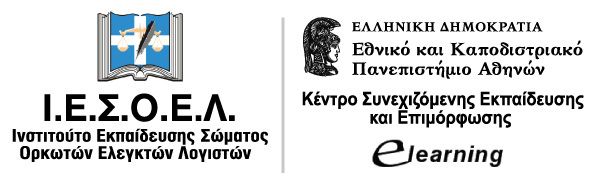 Το Ινστιτούτο Εκπαίδευσης Σώματος Ορκωτών Ελεγκτών Λογιστών (Ι.Ε.Σ.Ο.Ε.Λ.) και το Πρόγραμμα Συμπληρωματικής εξ Αποστάσεως Εκπαίδευσης (E-Learning) του ΕΚΠΑ ανακοινώνουν τη διάθεση εξειδικευμένων επιμορφωτικών Προγραμμάτων στους τομείς της Λογιστικής, της Ελεγκτικής, του Management, των Τραπεζικών, των Νομικών και της Φορολογίας.