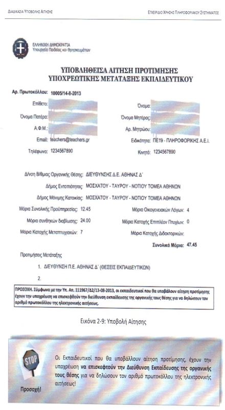 Για του λόγου το αληθές παρατίθεται παρακάτω το υπόδειγμα της αίτησης προτίμησης που υφίσταται στο εγχειρίδιο χρήσης «ηλεκτρονικού συστήματος αιτήσεων μετατάξεων εκπαιδευτικών»: