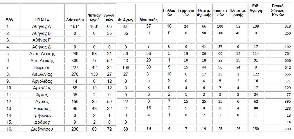 ΔΕΙΤΕ ΕΔΩ ΤΟ ΑΡΧΕΙΟ με τα Λειτουργικά κενά Πρωτοβάθμιας Εκπαίδευσης σχολ. έτος 2015-2016