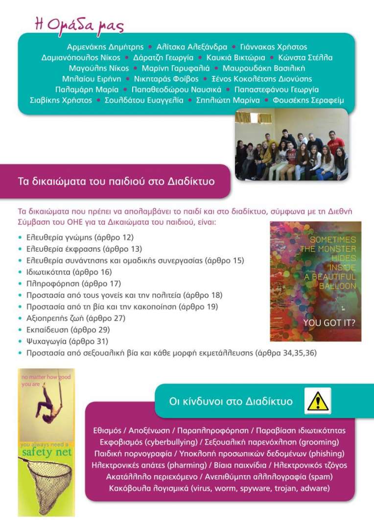Μπορείτε να μάθετε περισσότερα για τις δράσεις μας και να ενημερωθείτε σε θέματα που αφορούν στο διαδίκτυο μέσα από την ιστοσελίδα του προγράμματός μας http://rightnet.eu/ , τη σελίδα μας στο fb https://www.facebook.com/groups/282581675284786/, το wiki μας http://rightnetproject.org/ , την ιστοσελίδα του σχολείου μας http://lyk-pallin.att.sch.gr/