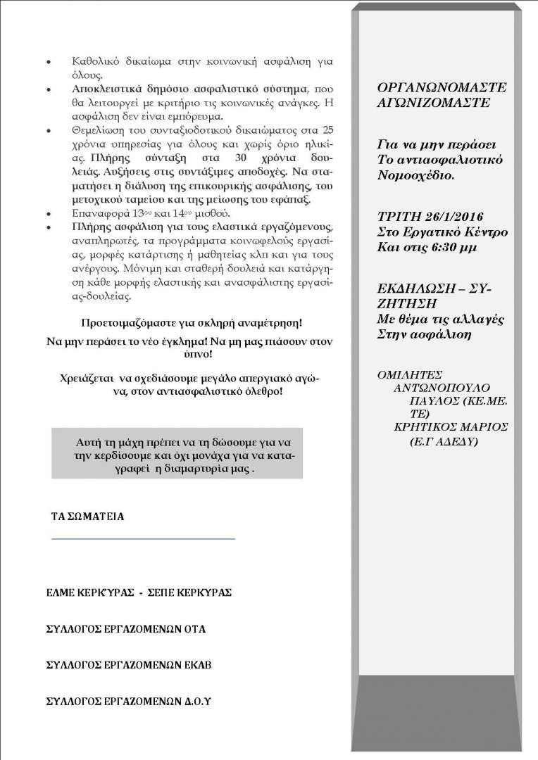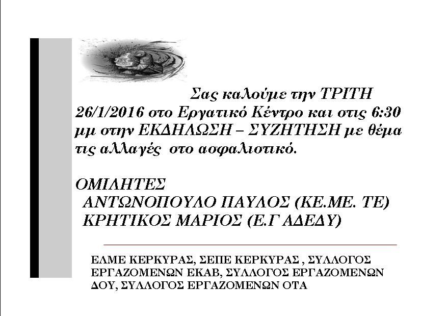 Εκδήλωση - συζήτηση για το ασφαλιστικό στο Εργατικό κέντρο Κέρκυρας 26/1
