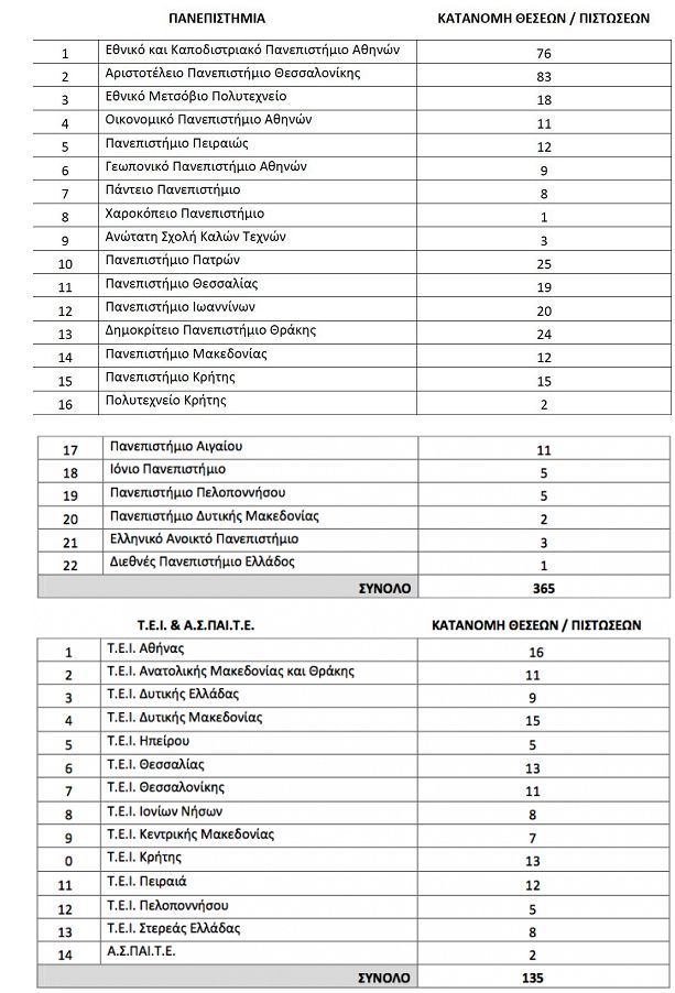 Η αναπληρώτρια Υπουργός Παιδείας Σία Αναγνωστοπούλου υπέγραψε την απόφαση κατανομής των πεντακοσίων (500) θέσεων για την πρόσληψη Καθηγητών/μελών ΔΕΠ στα Πανεπιστήμια, ΤΕΙ και Α.Σ.ΠΑΙ.Τ.Ε.