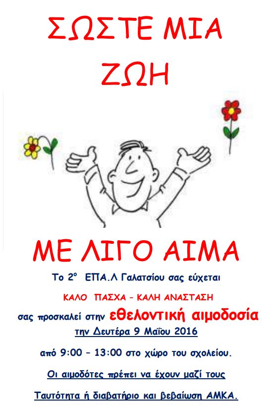 Εθελοντική αιμοδοσία του 2ου ΕΠΑΛ Γαλατσίου στις 9/5