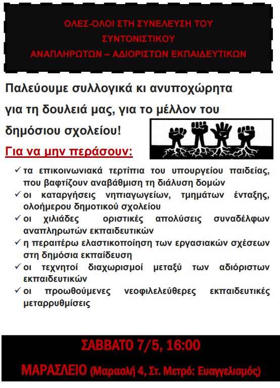 Κάλεσμα Συντονιστικού Αναπληρωτών - Αδιόριστων Εκπαιδευτικών