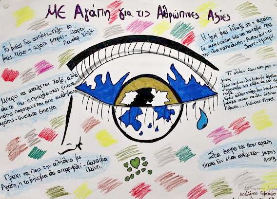Η έκθεση είχε διάρκεια έως τις 22 Μαΐου και έλαβαν μέρος όλα τα σχολεία του νησιού. Τέσσερα Δημοτικά με τους δασκάλους τους και τέσσερα Γυμνάσια (Δ.Σ. Ξηροκάμπου, Δ.Σ. Αλίντων, Δ.Σ. Αγ. Μαρίνας, Γ/σιο Πλατάνου, Γ/σιο Λακκίου, ΕΠΑΛ Λακκίου, ΓΕΛ Λακκίου). Συμμετείχαν 2 εικαστικοί εκπαιδευτικοί και δάσκαλοι.