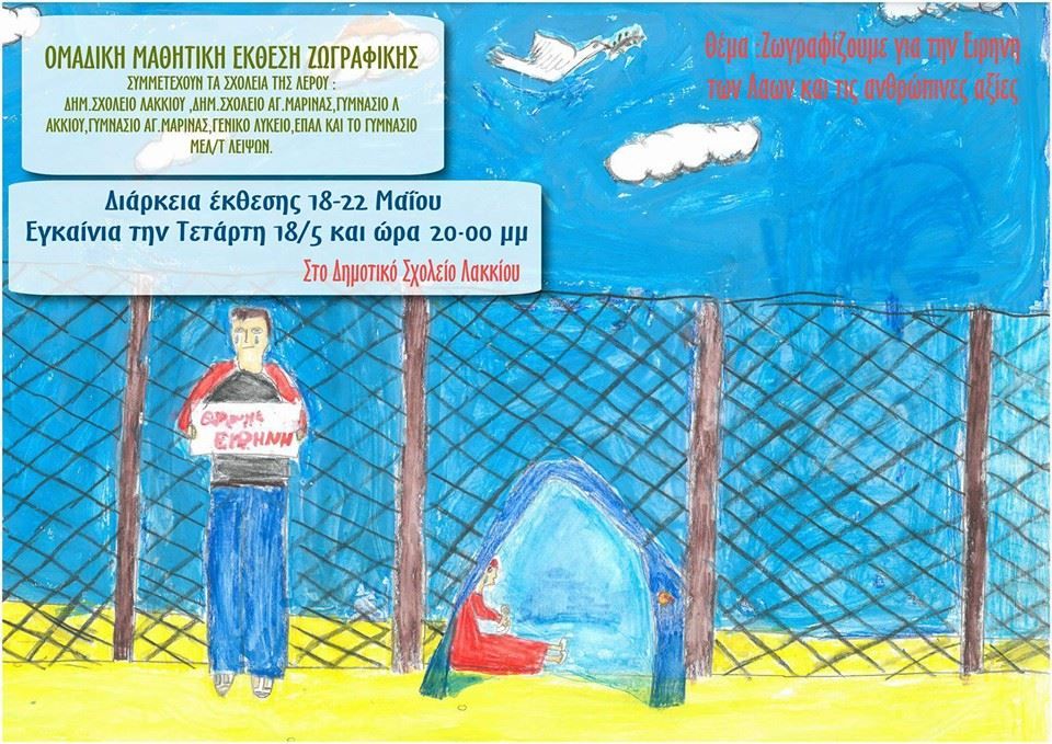 Με την ομαδική μαθητική έκθεση στη Λέρο που εγκαινιάστηκε με μεγάλη επιτυχία, την Τετάρτη 18 Μαΐου στον πολύ όμορφο προαύλιο χώρο του, ιταλικής αρχιτεκτονικής, Σχολείου Λακκίου Λέρου, έκλεισε ένα μεγάλο μέρος των εκθέσεων της Ένωσης μέσα στο Μάιο 2016 στην περιφέρεια, με θέμα «Ζωγραφίζουμε για την ειρήνη των λαών και τις ανθρώπινες αξίες».