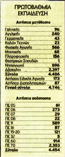 Με βάση τα στοιχεία των αρμόδιων υπηρεσιών του υπουργείου Παιδείας, ο αριθμός των αιτήσεων απόσπαση εκπαιδευτικών Πρωτοβάθμιας που υποβλήθηκαν για το 2016 ανέρχεται σε 4.454 , ενώ συνολικά οι αιτήσεις (μαζί με τους καθηγητές) αγγίζουν τις 10.000. Περίπου άλλες 10.000 είναι και οι αιτήσεις μετάθεσης σε Πρωτοβάθμιας και Δευτεροβάθμια Εκπαίδευση. Μόνο οι δάσκαλοι έχουν καταθέσεις 4.746 αιτήσεις μετάθεσης.