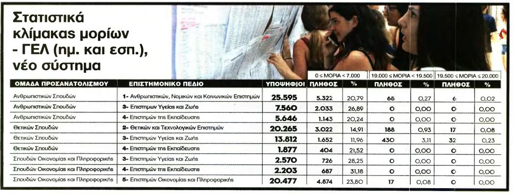 Η εικόνα πάντως των μορίων μάλλον είναι εξαιρετικά απογοητευτική, δεδομένου ότι σχεδόν σε όλα τα πεδία δεν υπάρχουν καθόλου αριστούχοι ή ελάχιστοι. Αντιθέτως, τα ποσοστά αυτών που κατέκτησαν από 0 έως 7.000 μόρια είναι εξαιρετικά υψηλά.