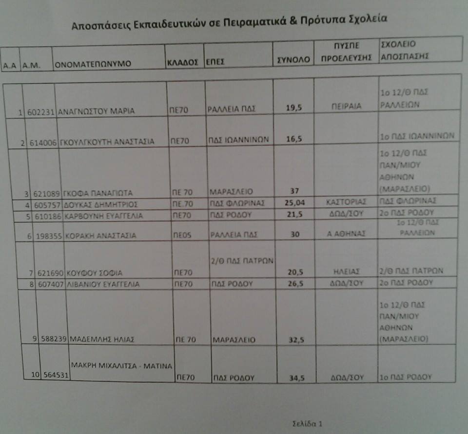 Παρακάτω θα δείτε τις αποσπάσεις εκπκών ΠΕ σε πειραματικά και πρότυπα σχολεία ,σύμφωνα με την εισήγηση της Δ.Ε.Π.Π.Σ.,επισημαίνοντας ότι το ΚΥΣΠΕ τυπικά παρεμβαίνει στο θέμα,αφού απλά αποσπά τους εκπαιδευτικούς με βάση τον επικυρωμένο πίνακα μοριοδότησης που καταθέτει η Δ.Ε.Π.Π.Σ.