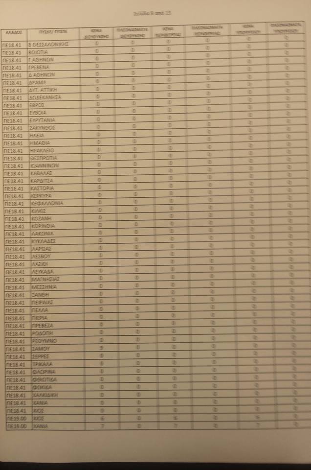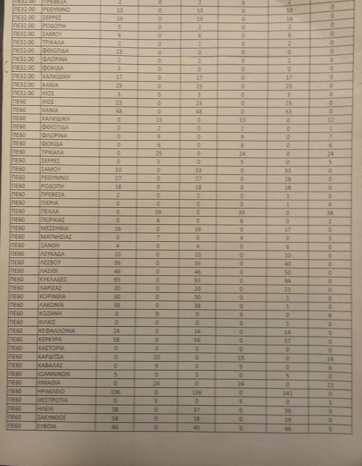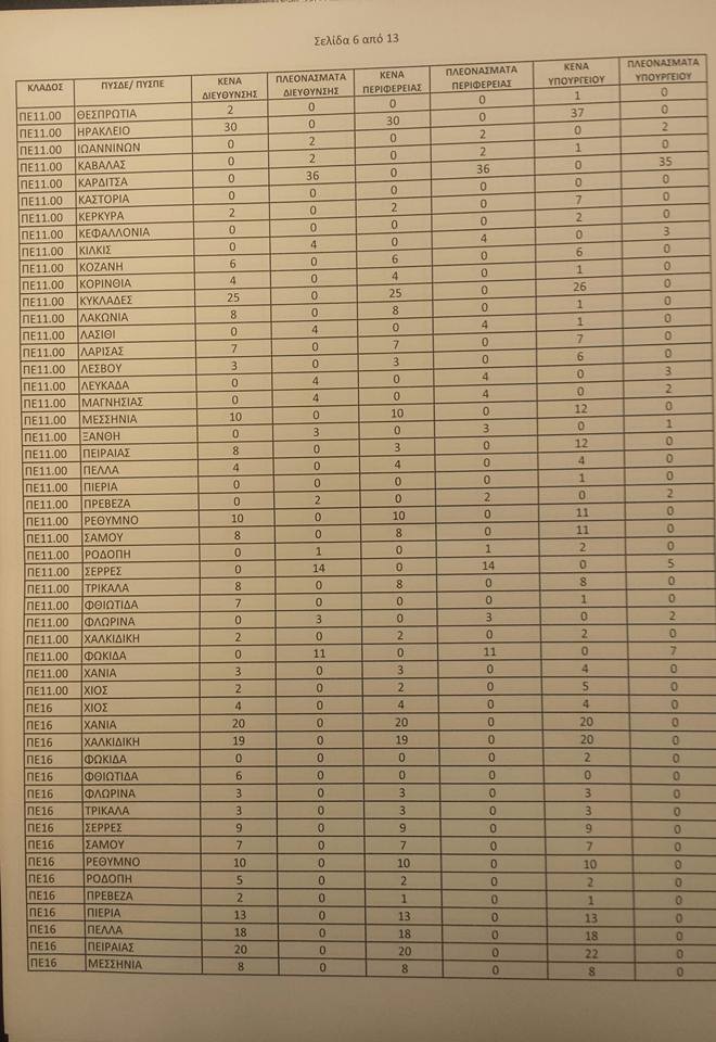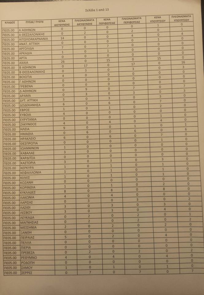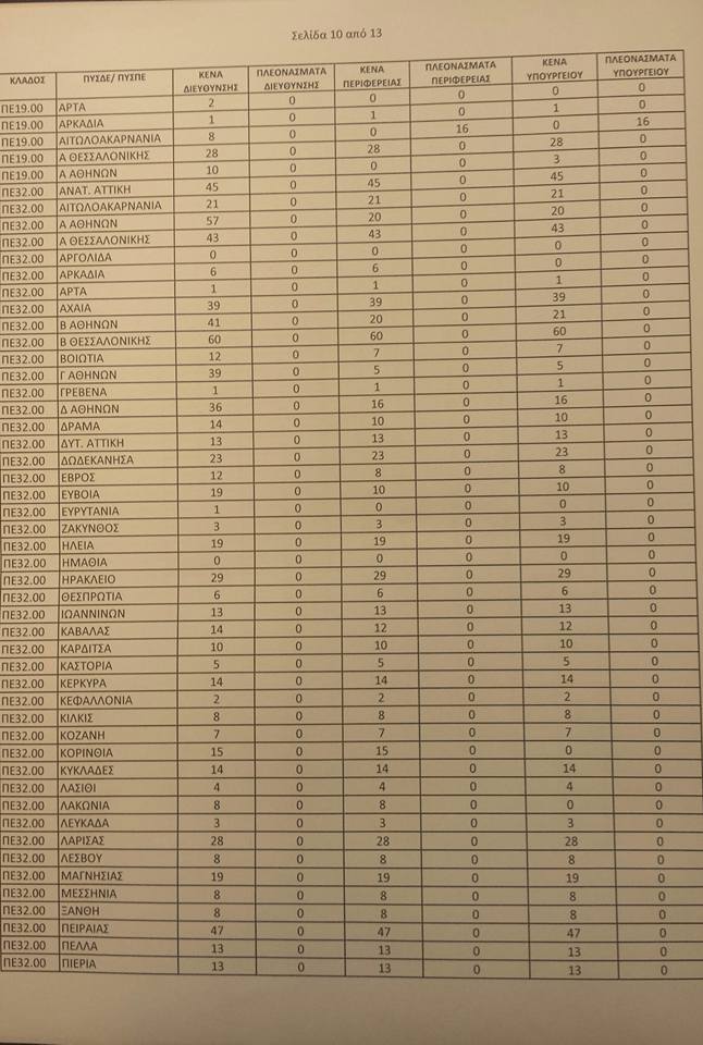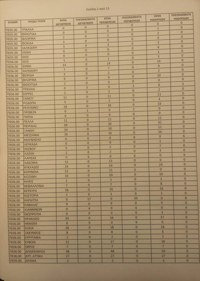 Λειτουργικά κενά ειδικοτήτων για τις αποσπάσεις από ΠΥΣΠΕ σε ΠΥΣΠΕ