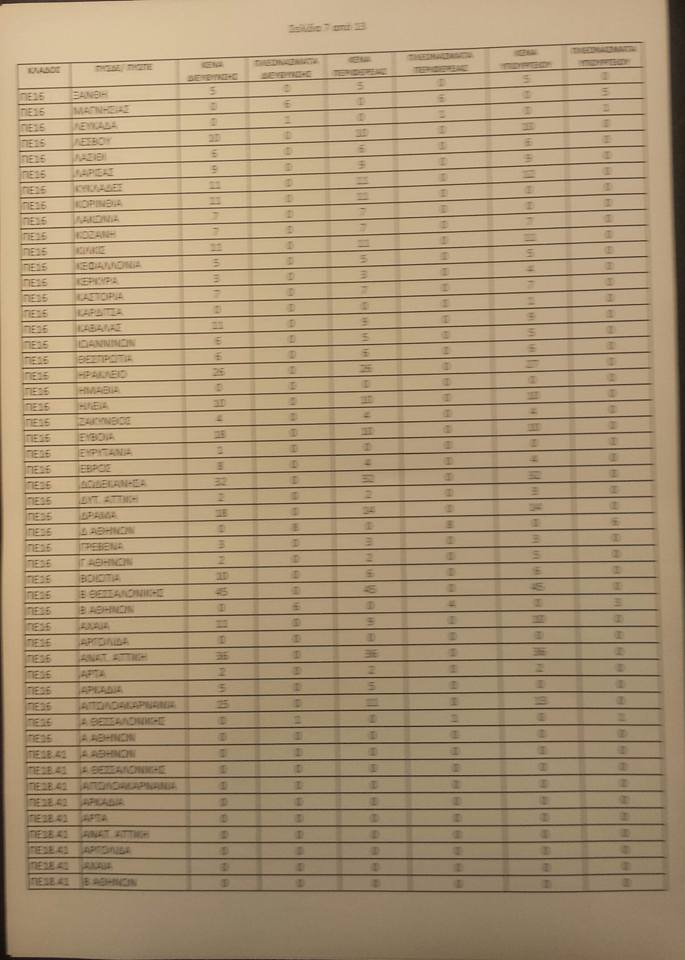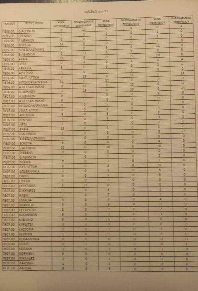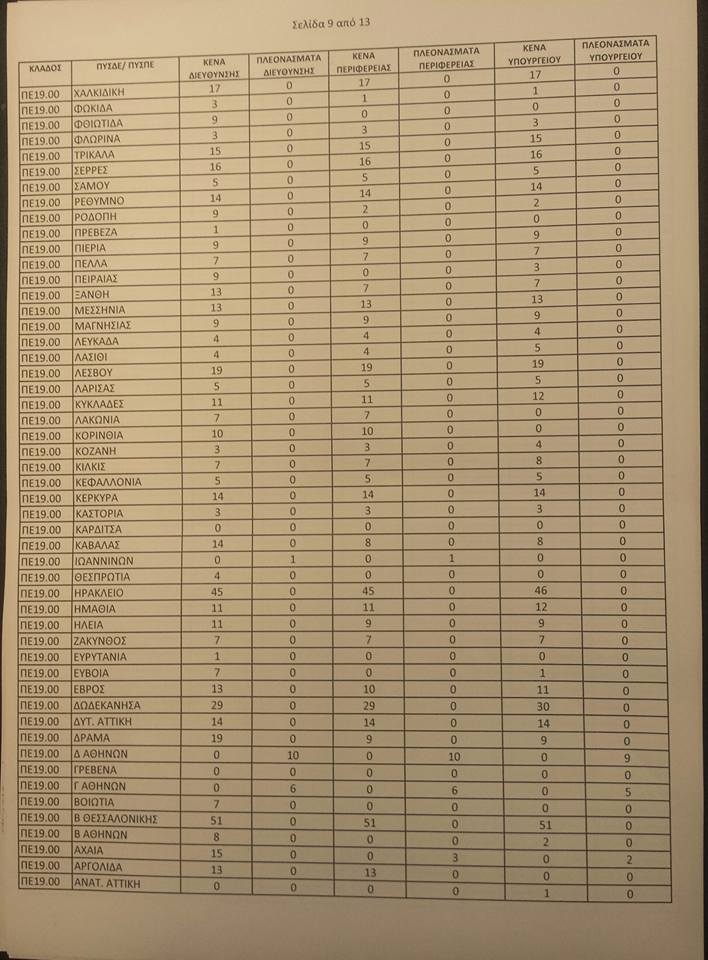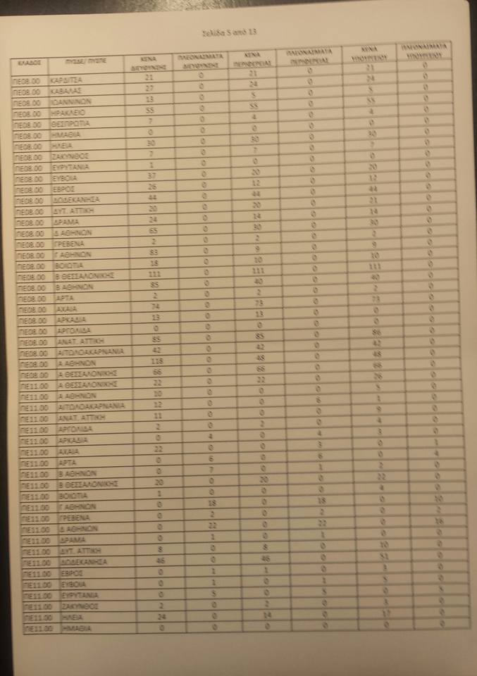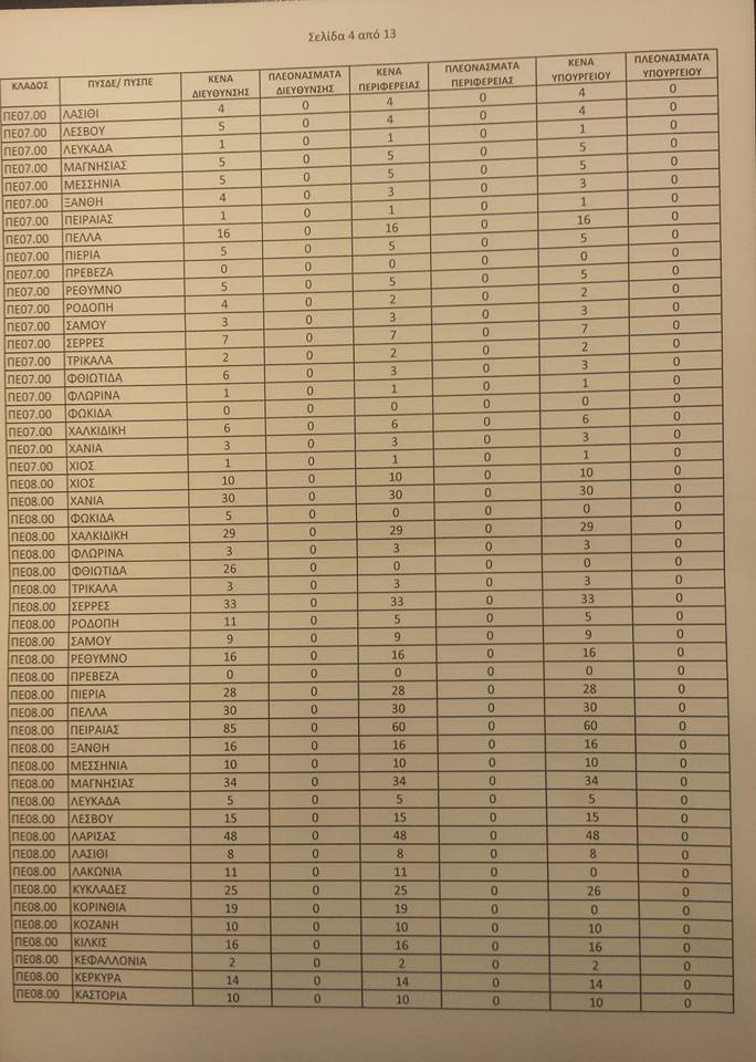 Λειτουργικά κενά ειδικοτήτων για τις αποσπάσεις από ΠΥΣΠΕ σε ΠΥΣΠΕ
