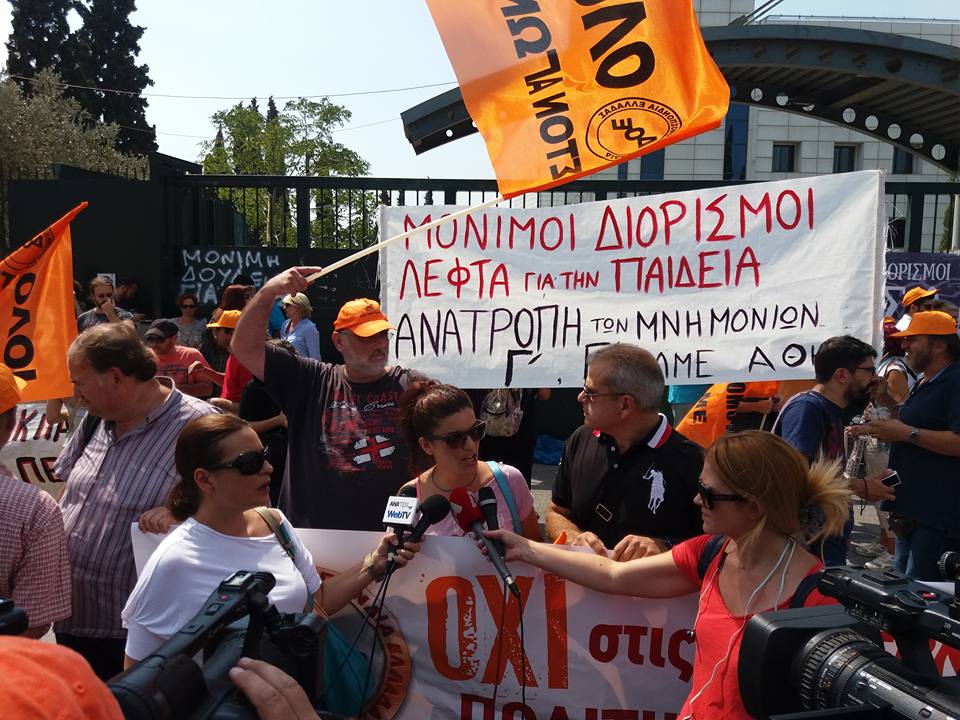 Έξω από το Υπουργείο Παιδείας βρίσκονται αυτή την στιγμή οι διαδηλωτές εκπαιδευτικοί