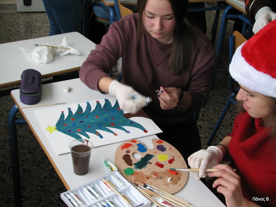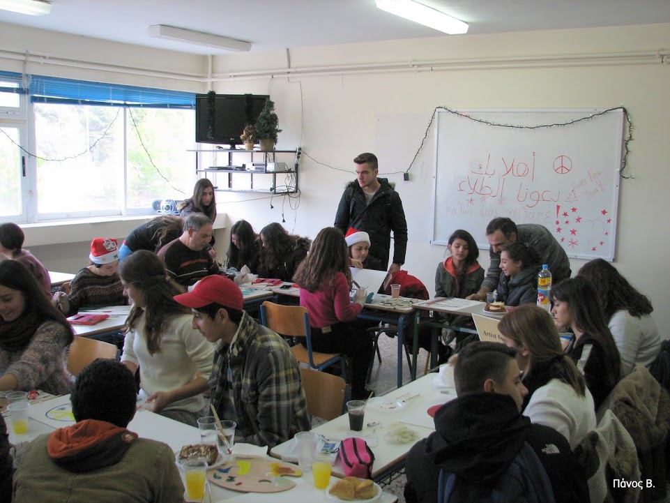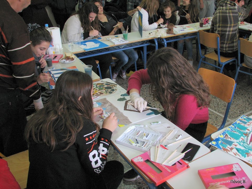 Με την αρωγή των συλλόγων γονέων και κηδεμόνων και των καθηγητών τους τα παιδιά ζωγράφισαν για την Ειρήνη και για τις γιορτές σε αίθουσα του σχολείου και γεύτηκαν τις λιχουδιές και τα αναψυκτικά που προσέφεραν οι γονείς μέσω του συλλόγου τους.