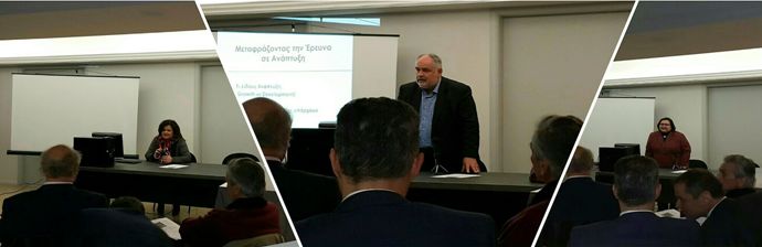 Οι τοποθετήσεις ολοκληρώθηκαν με τον Καθηγητή του Τμήματος Χημείας του Πανεπιστημίου Ιωαννίνων, κ. Μιχάλη Κοντομηνά, ο οποίος μετέφερε την εμπειρία του από τις Ηνωμένες Πολιτείες και την Γερμανία και τον Επίκουρο Καθηγητή του Τμήματος Χημείας ΕΚΠΑ, κ. Χ. Προεστό, ο οποίος μας μετέφερε τα αποτελέσματα ερευνητικής δραστηριότητας του εργαστηρίου Τροφίμων, τα οποία δεν βρήκαν πρακτική εφαρμογή από τους ίδιους τους ερευνητές, αλλά αποτέλεσαν τη βάση για την παραγωγή καινοτόμων προϊόντων.