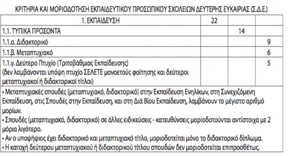 Οι υποψήφιοι θα καταταγούν σε έναν (1) αξιολογικό πίνακα κατάταξης ανά Περιφέρεια, ανάλογα με την ειδικότητά τους σύμφωνα με τον πίνακα μοριοδότησης.