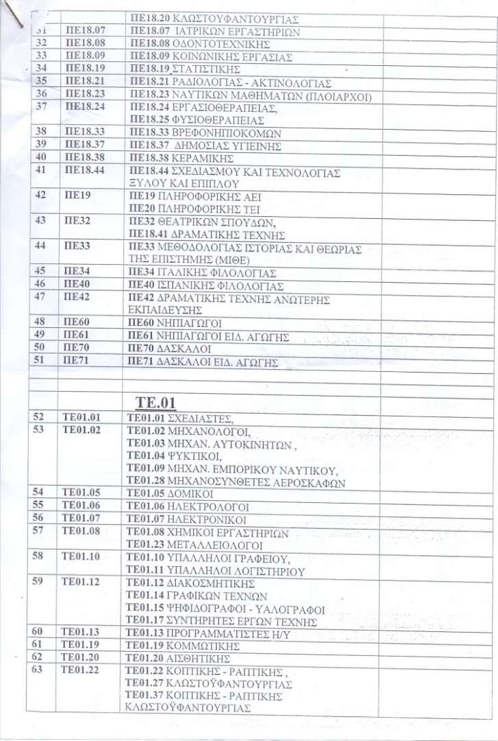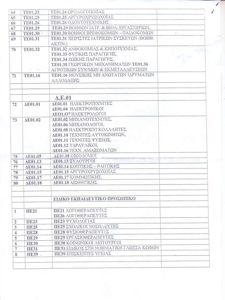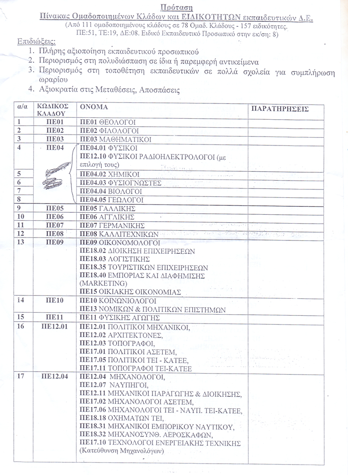 Η πρόταση του ΙΕΠ για την ενοποίηση ειδικοτήτων όπως στάλθηκε από το Υπουργείο Παιδείας.