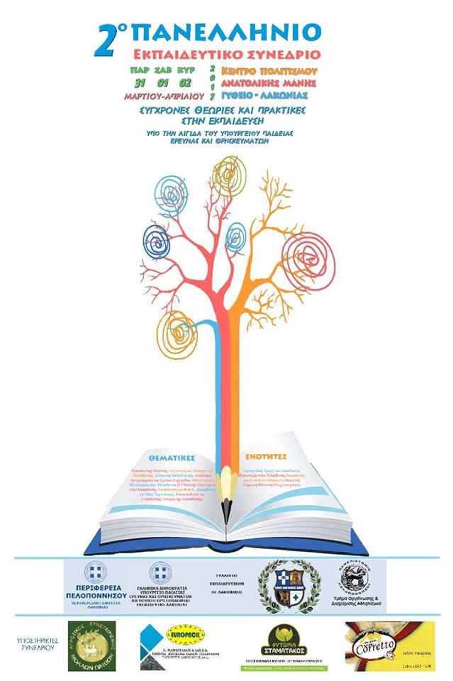 Για δεύτερη συνεχόμενη χρονιά ο Σύλλογος Εκπαιδευτικών Πρωτοβάθμιας Εκπαίδευσης Λακωνικής, σε συνεργασία με τη Διεύθυνση Πρωτοβάθμιας Εκπαίδευσης Λακωνίας, την Περιφερειακή Ενότητα Λακωνίας, το Δήμο Ανατολικής Μάνης και το Τμήμα Οργάνωσης και Διαχείρισης Αθλητισμού του Πανεπιστημίου Πελοποννήσου ,συνδιοργανώνουν το Πανελλήνιο Εκπαιδευτικό Συνέδριο, με τίτλο: «Σύγχρονες θεωρίες και πρακτικές στην εκπαίδευση», στην πόλη του Γυθείου, στις 31 Μαρτίου, 01 και 02 Απριλίου 2017.