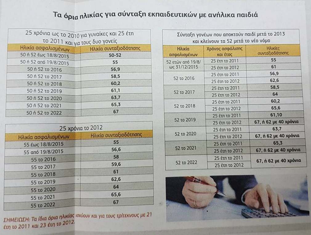 2. Με τουλάχιστον 25 έτη έως το 2011, για όσους προσλήφθηκαν μετά το 1983 και είτε δεν συμπληρώνουν τα 30 έτη είτε έχουν τα 30 χρόνια διδασκαλίας, αλλά αργούν να κλείσουν το 60ό έτος. Σε αυτή την περίπτωση παίρνουν μειωμένη σύνταξη από τα 57,5 έως τα 61,6, εφόσον έκλεισαν τα 56 από 19/8/2015 και μετά.