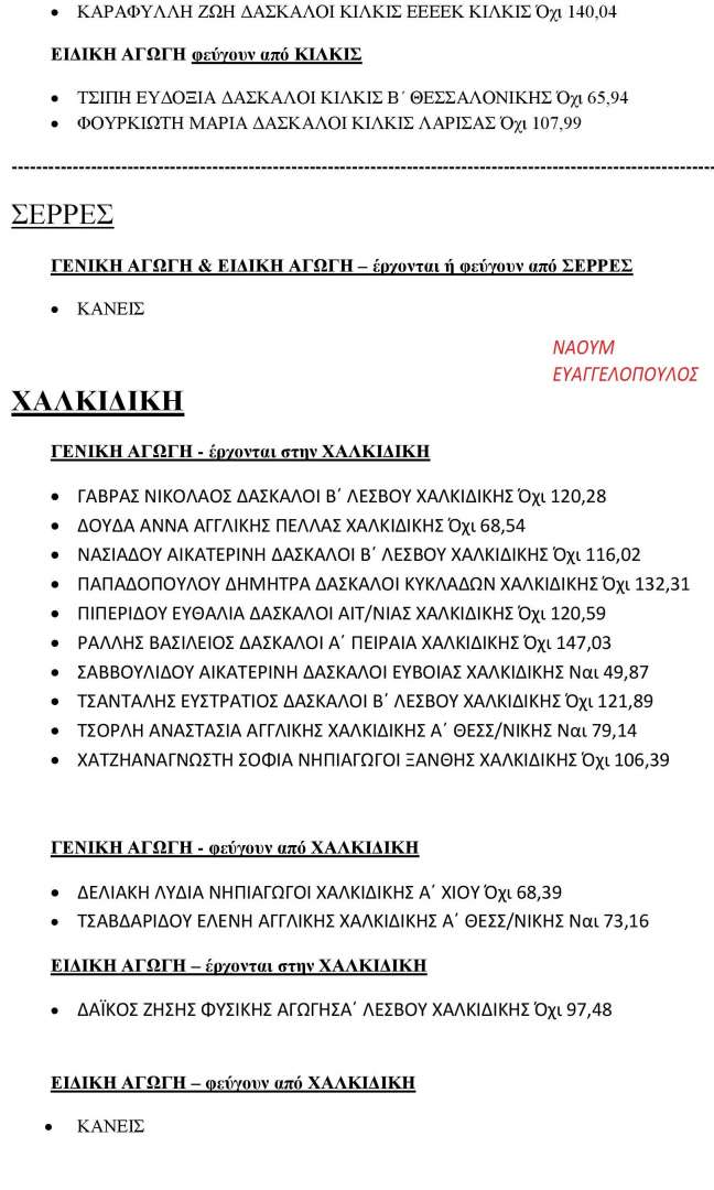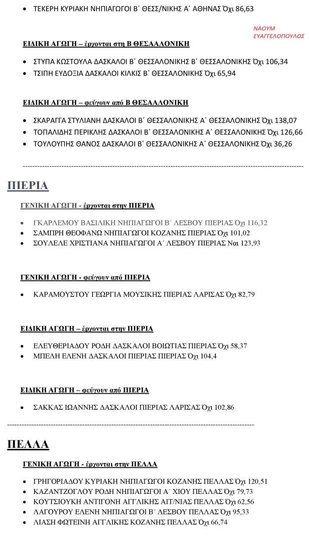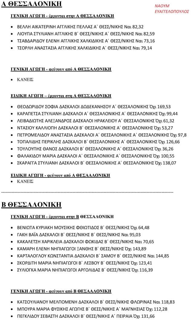 Αριθμοί και ονόματα από τις Μεταθέσεις Εκπαιδευτικών ΠΕ 2016-2017 για την Κεντρική Μακεδονία.