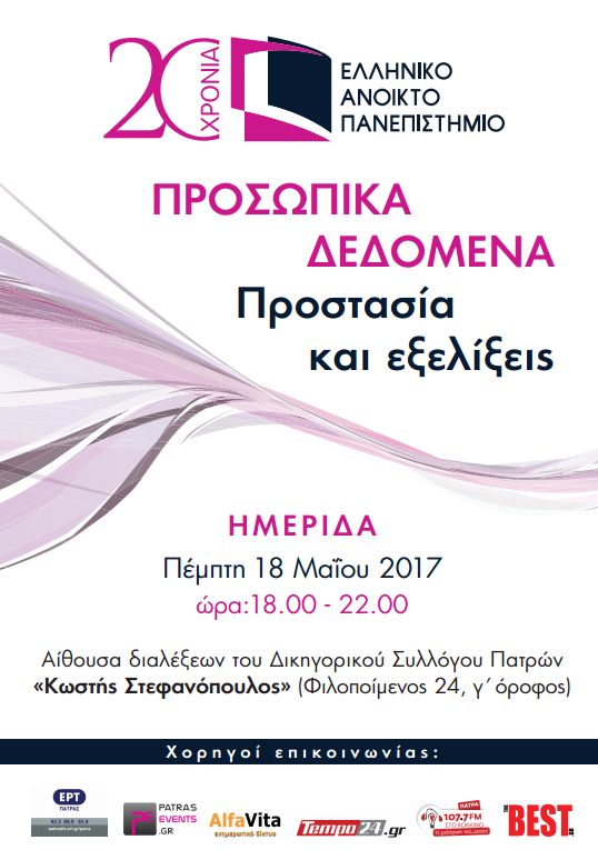 Το Ελληνικό Ανοικτό Πανεπιστήμιο διοργανώνει ημερίδα με θέμα «ΠΡΟΣΩΠΙΚΑ ΔΕΔΟΜΕΝΑ - Προστασία και Εξελίξεις», με αφορμή τον νέο Ευρωπαϊκό Κανονισμό 2016/679 που τίθεται σε υποχρεωτική εφαρμογή για όλα τα κράτη – μέλη της Ευρωπαϊκής Ένωσης στις 25.05.2018.