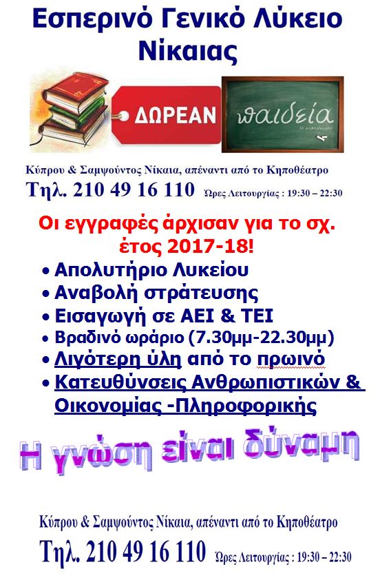 -ΕΣΠΕΡΙΝΟ ΓΕΝΙΚΟ ΛΥΚΕΙΟ ΝΙΚΑΙΑΣ-