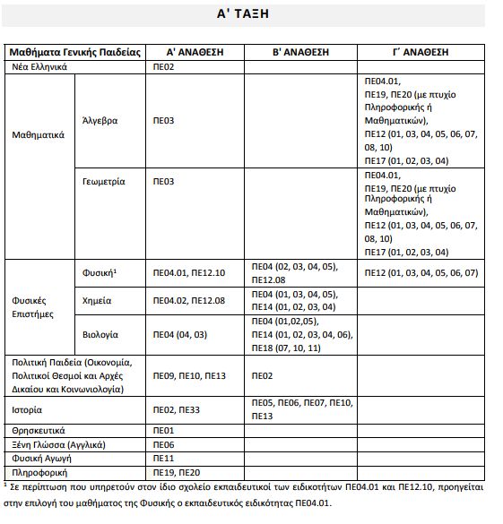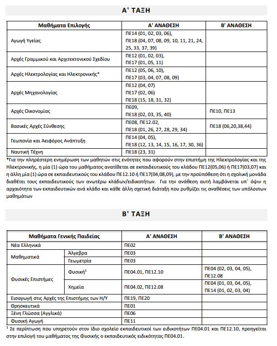 3. μαθήματα της δεύτερης ειδικότητας (σε α΄ και β΄ ανάθεση)