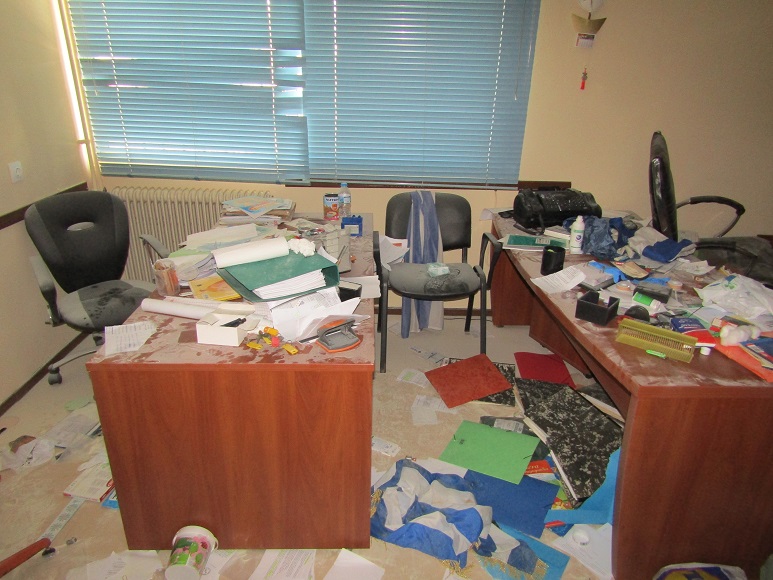 Το κτίριο υπέστη πλήρη σχεδόν διάλυση εσωτερικά μετά την επιδρομή βανδάλων που δεν αρκέστηκαν στις φθορές αλλά ξήλωσαν πόρτες και αντικείμενα και υλικά και κατέστρεψαν και αρχεία. Δεν δίστασαν να το χρησιμοποιήσουν ως και για αφοδευτήριο, όπως σημειώνει το agrinionews.gr.