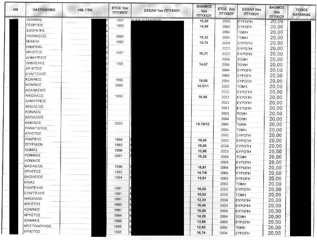 Αποκαλύπτουμε σήμερα λίστα μαθητών (συνημμένη), τα ονόματα των οποίων είναι στη διάθεση οποιουδήποτε φορέα, αρχής ή πολίτη επιθυμεί, που λίγα χρόνια μετά την αποφοίτησή τους από το δημόσιο λύκειο με κακό βαθμό, πήραν απολυτήριο από αυτά τα ιδιωτικά ΤΕΕ-φαντάσματα της Άρτας. Ως εκ θαύματος, οι μετριότατοι μαθητές του δημόσιου σχολείου μετετράπησαν – προφανώς μετά από θεία επιφοίτηση – σε άριστους και μάλιστα με ολοστρόγγυλα είκοσι! Πολλοί από τους «φωτισμένους» αυτούς εγκεφάλους σήμερα είναι διορισμένοι στο Δημόσιο.