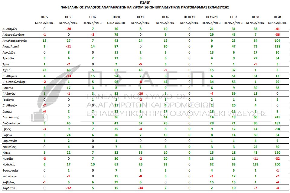 επεξεργαστήκαμε τα κενά που έδωσε ο αιρετός του ΚΥΣΠΕ Β. Παληγιάννης σε συνδυασμό με τις αποσπάσεις που έγιναν πριν λίγες μέρες και δημιουργήσαμε πίνακα με τα υπάρχοντα κενά σε εκπαιδευτικούς Πρωτοβάθμιας Εκπαίδευσης.