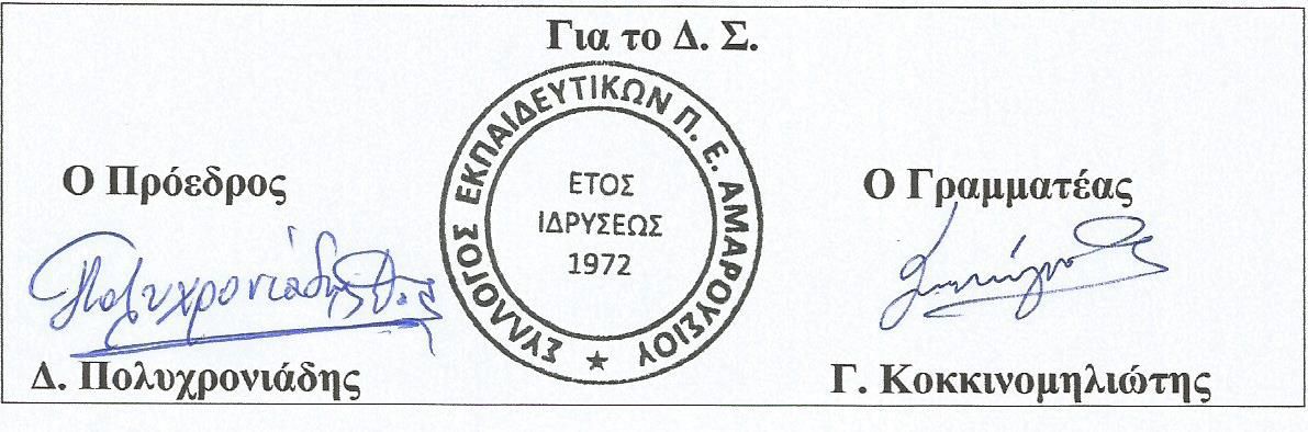 Καλούμε το Δ.Σ. της ΔΟΕ να πάρει αντίστοιχη απόφαση.