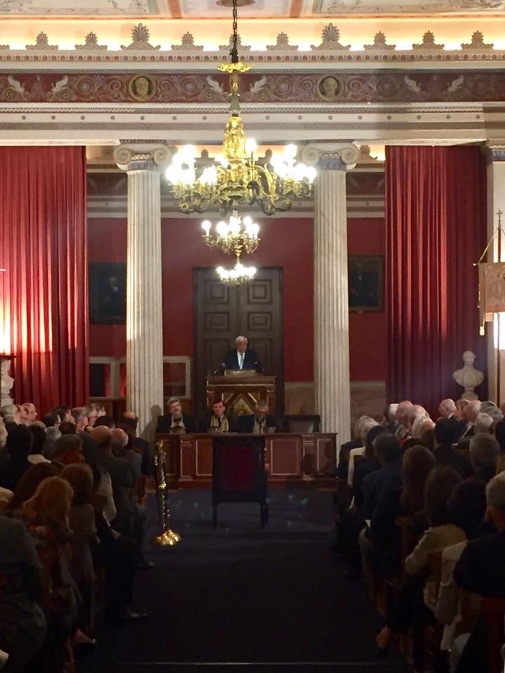 Στην εκδήλωση παρέστη και ήταν ο κεντρικός ομιλητής ο Πρόεδρος της Δημοκρατίας, κ. Προκόπης Παυλόπουλος, ο οποίος υπήρξε διακεκριμένο στέλεχος της Νομικής Σχολής, καθώς δίδαξε σε αυτήν ως Καθηγητής επί σειρά ετών. Ο Πρόεδρος της Δημοκρατίας στην ομιλία του αναφέρθηκε με μια εκτενή ιστορική αναδρομή στη Νομική Σχολή ως alma mater του Δημοσίου Δικαίου και ολοκλήρωσε την ομιλία του αναφερόμενος σε «δύο μεγάλες θεσμικές -και όχι μόνον- αλήθειες: Πρώτον, ότι η Δημοκρατία είναι εύθραυστο αγαθό και η υπεράσπισή της είναι καθημερινό χρέος, δοθέντος ότι οι κίνδυνοι που σήμερα την απειλούν είναι τόσο πιο «ύπουλοι» όσο δρουν υποδορίως και «περιτέχνως» μεταλλαγμένοι. Και, δεύτερον, ότι ενδεχόμενη επικυριαρχία του «οικονομικού» επί του «θεσμικού», ήτοι υποβάθμιση της αξίας των Δημοκρατικών Θεσμών εν ονόματι μιας δήθεν οικονομικής αποτελεσματικότητας, συνιστά μέγιστο κίνδυνο, τόσο για την Αντιπροσωπευτική Δημοκρατία όσο και για τον ίδιο τον Πολιτισμό μας, και όχι μόνο το Νομικό”».
