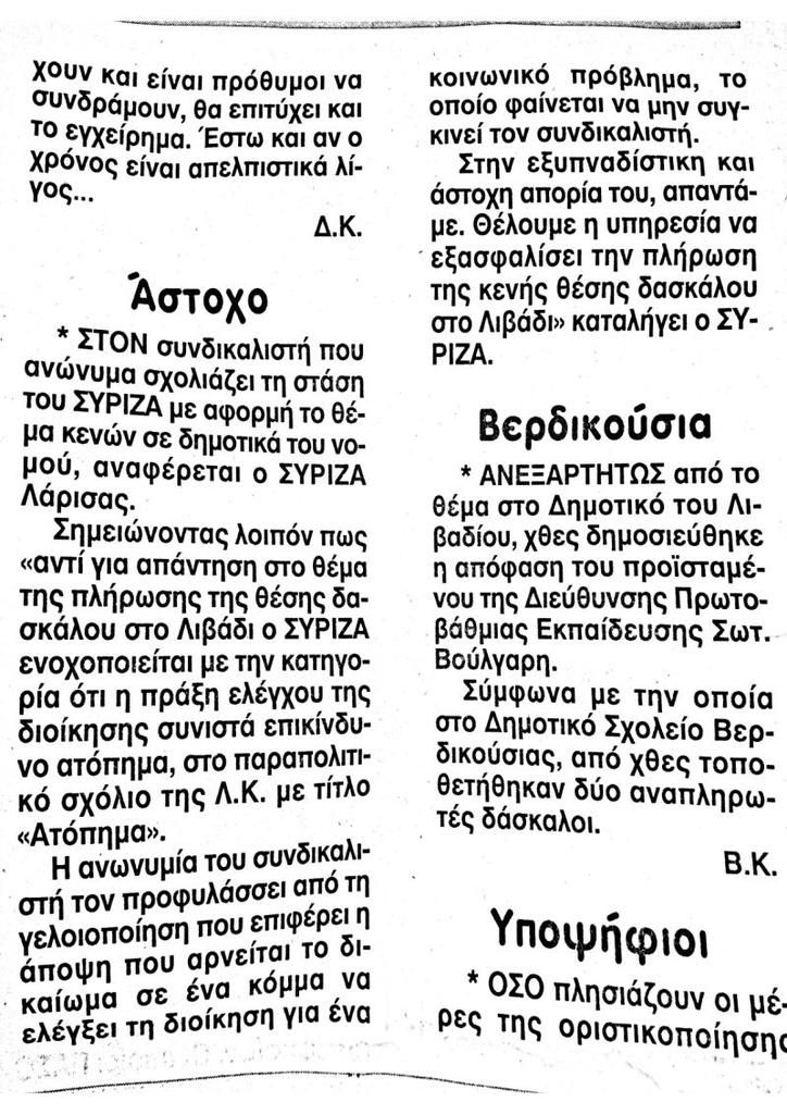 Παραθέτουμε τα δημοσιεύματα που προκάλεσαν την ανακοίνωση των δύο αιρετών (όλως τυχαίως τα παρέλειψαν) και με την οποία καταφέρονται κατά του ΣΥΝΕΚ με τη λογική "Ο λύκος στην αναμπουμπούλα χαίρεται".