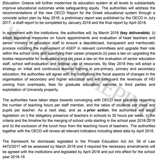 Παραθέτω εδώ το χαρακτηριστικό απόσπασμα για την Εκπαίδευση από τη σελ 27 που πλέον επιβεβαιώνει ό,τι λέγεται κι ανακοινώνεται το προηγούμενο διάστημα: