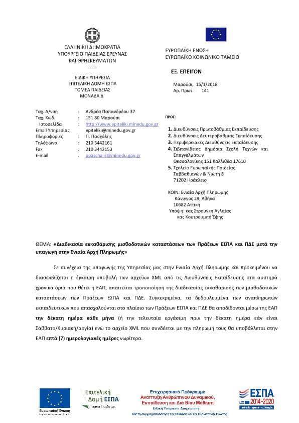 Ο Πανελλήνιος Σύλλογος Αναπληρωτών Δασκάλων ενημερώνει για την Ενιαία Αρχή Πληρωμών και τις προσλήψεις που δε γίνονται στην πρωτοβάθμια: