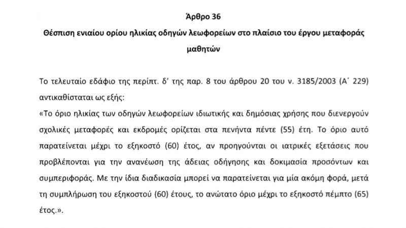 Ειδικότερα η συγκεκριμένη διάταξη συμπεριλήφθηκε στο άρθρο 36 του Σχεδίου Νόμου “Ρυθμίσεις θεμάτων μεταφορών και άλλες διατάξεις”, έχει ως εξής: