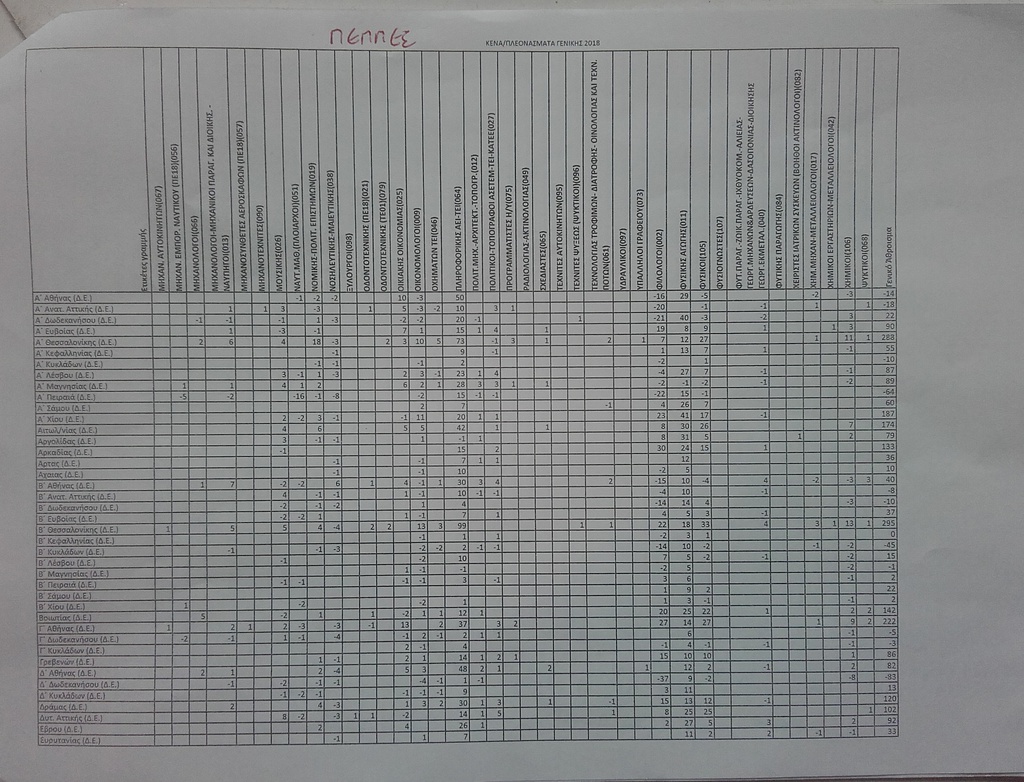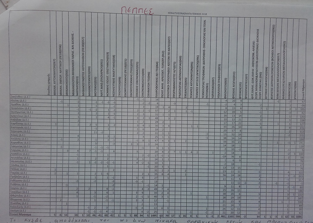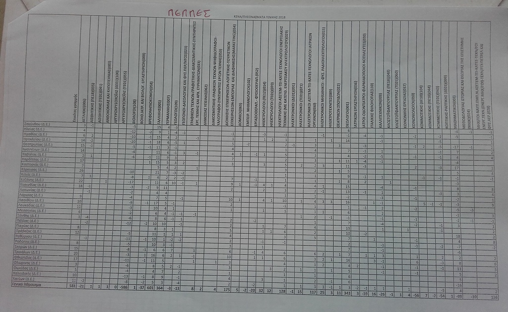 Προς ενημέρωση των συναδέλφων κοινοποιώ τους πίνακες Κενών/Πλεονασμάτων για τις Γενικές Μεταθέσεις 2018 βάση των προτάσεων από τις Περιφερειακές Δ/νσεις Εκπ/σης.