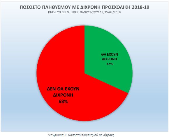 Το Υπουργείο ανακοίνωσε έναρξη προσχολικής το 2018-19, βάσει ομοφωνίας Δήμων-ΔΙΠΕ-ΣΕΠΕ-ΠΔΕ όπως δήλωσε ο Υπουργός Παιδείας (Υπουργείο Παιδείας, 2018), σε 184 Δήμους από τους 325, δηλ σε ποσοστό 57%, όπως φαίνεται στο Διάγραμμα 1:
