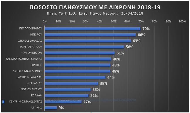 ΠΕΡΙΦΕΡΕΙΑ | ΣΥΝΟΛΟ ΔΗΜΩΝ | ΘΑ ΕΧΟΥΝ ΔΙΧΡΟΝΗ | % ΔΙΧΡΟΝΗΣ |