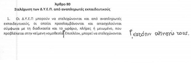 Δηλαδή δεν θα υπάρχει κανένα κριτήριο καθώς όπως αναφέρεται στην τελευταία παράγραφο οι προσλήψεις των αναπληρωτών εκπαιδευτικών γίνονται με τη χρήση των ενιαίων υφιστάμενων πινάκων αναπληρωτών ΠΕ και ΔΕ όλων των κλάδων του ΥΠΠΕΘ.