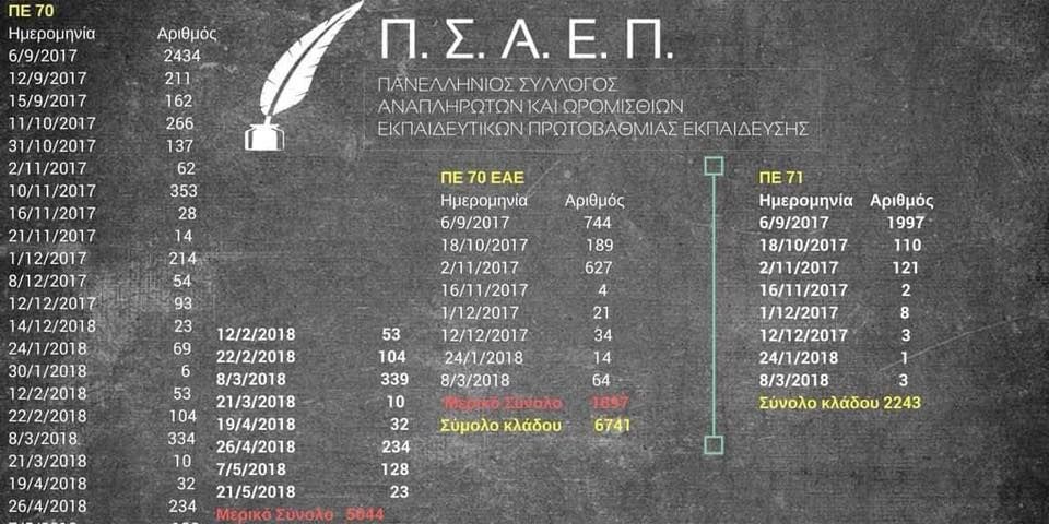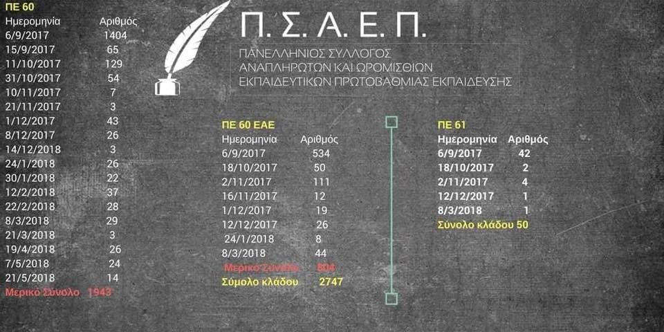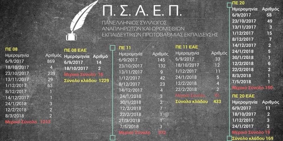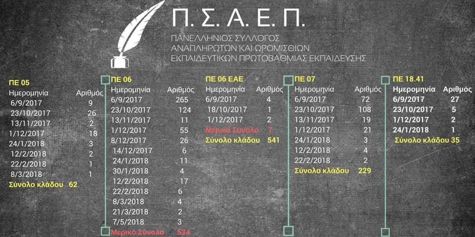 Ο ΠΣΑΕΠ μας έστειλε αναλυτικά τα στοιχεία προσλήψεων των αναπληρωτών εκπαιδευτικών σε ΠΕ στη Γενική και Ειδική εκπαίδευση για να έχουν οι υποψήφιοι αναπληρωτές μια εικόνα: