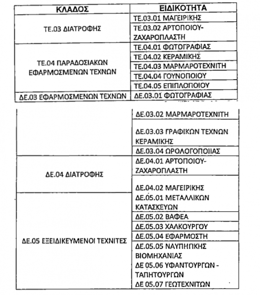 - Στον κλάδο ΤΕ και ΔΕ του εκπαιδευτικού προσωπικού του ΟΑΕΔ, προβλέπονται, πέραν του άρθρου 29, και οι παρακάτω κλάδοι με τις αντίστοιχες ειδικότητες: